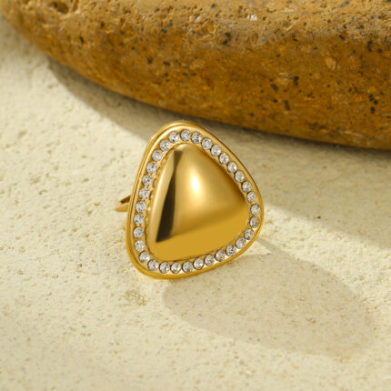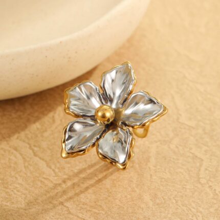 An InS-style versatile and trendy stainless steel ring with 18K gold plating, irregular petal colors, and natural stone titanium steel with an open opening
