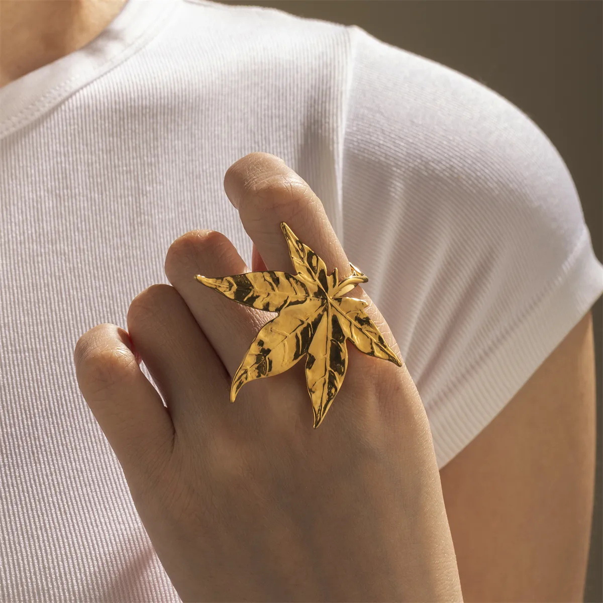 Maple leaf titanium steel exaggerated ring, light luxury and high-end style ins ring stainless steel jewelry
