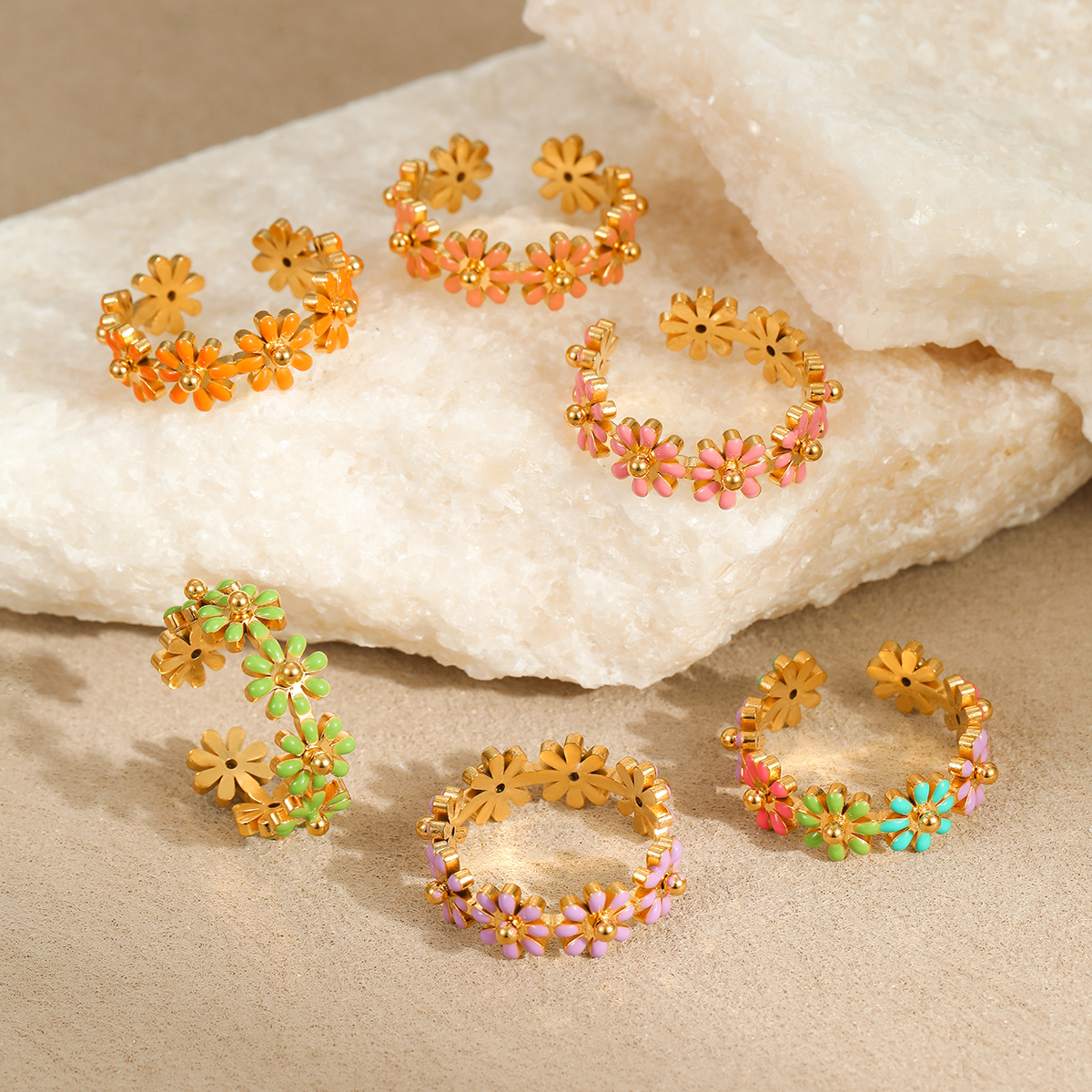 The stainless steel 18k gold color dopamine Daisy flower ring does not fade